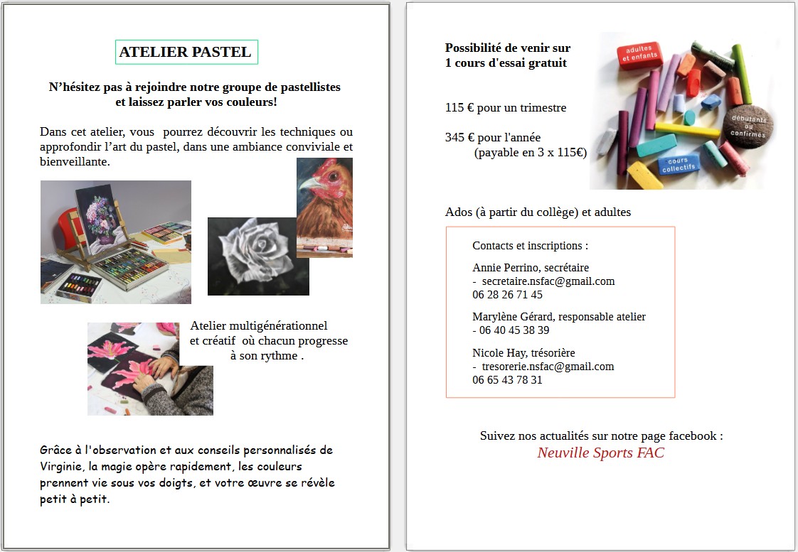 Télécharger le document pdfLes infos : dates, tarifs et contacts référents des différentes activités de la FAC